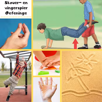 Hier volg ‘n paar oefeninge wat ouers/onderwysers in kan inbring in oefenprogramme kan inbring. Gee, as omgee-onderwyser, ook die oefeninge vir die ouers van leerders wat baie sukkel. Indien daar ná ‘n maand se oefeninge geen vordering is nie, verwys die kind na ‘n arbeidsterapeut.